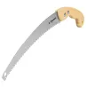 El serrucho de poda con hoja curva de 300 mm es la herramienta ideal para cortes rápidos y precisos en poda profesional. Fabricado con acero SK5 resistente al desgaste, su hoja de 6 dientes por pulgada con triple filo (dureza 50-64 HRc) garantiza cortes limpios en ramas de viñedos, frutales y jardines. El mango de madera ergonómico ofrece un agarre cómodo, reduciendo la fatiga durante trabajos intensivos.
