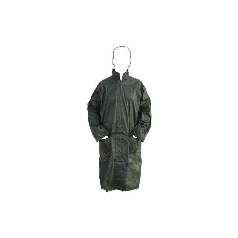 Chaqueta larga de agua. Sus costuras van termoselladas, Cuenta con una capucha escamoteable en la zona del cuello,Cierre por cremallera y tapeta antifrío. Dispone de puños interiores elásticos y dos bolsillos con tapa. Tallas disponibles desde la S a la XXXL. Puede usarse para días lluviosos o para cualquier deporte como senderismo o pesca. Muy ligero, resistente y flexible.